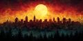 Majestic Wolf Silhouette Against Portland's Sunset Skyline