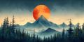 Majestic Sunset Over Red Mountain and Misty Forest Lake