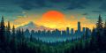 Retro Style Sunset and Cityscape of Portland, Oregon