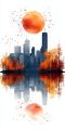 Monochromatic Watercolor Interpretation of Portland's Serene Skyline