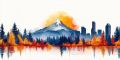 Vibrant Vector Illustration of Portland's Skyline with Autumn Colors