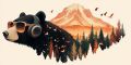 A Stylish Black Bear with Sunglasses and Headphones in Portland's Wilderness