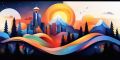 Colorful Cubist Interpretation of Portland's Architectural Essence
