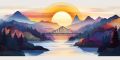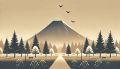 Autumnal Glory in a Stylized Mountain Landscape Illustration
