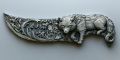Intricate and Ornate Handcrafted Knife on Rugged, Charred Background