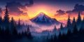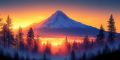Majestic Sunset Over Mount Hood: A Vibrant Artistic Representation