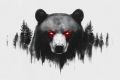 Majestic Black Bear with Red Eyes Amidst Ghostly Forests