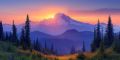 Enchanting Sunset Over Mt. Hood in a Stylized Portland Landscape