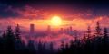 Portland Skyline Silhouetted Against a Majestic Sunset