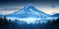 Mystical Blue Representation of Mount Hood Shrouded in Mist