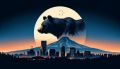 Majestic Cougar Silhouette Overlooking Portland Skyline and Mount Hood