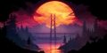 Enigmatic Twilight at a Serene Mountain Lake Under a Giant Moon