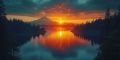 Fiery Dawn Reflections at Mount Hood Over Serene Lake