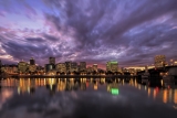 Dusk Descends Over the Portland Skyline with Glimmering Reflections