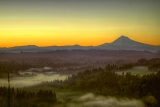 Enchanting Sunrise Illuminates Mount Hood and Misty Landscape