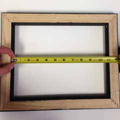 We will have you email a photo, placing a measuring tape across the frame. In the case of a picture frame, you will place the tape across the back of the frame (see image 8). If you have purchased a floater frame, you will place the tape across the front of the frame (see image 9). Please make sure your photo is well-lit, taken either in natural light or in a room with good lighting.